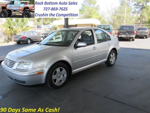 LEGENDARY VW DIESEL MOTOR POWERS THIS LIKE NEW JETTA TDI !!! LIKE NEW SILVER PAINT WITH SPOTLESS CLOTH INTERIOR INSIDE!! SMOOTH SHIFTING AUTOMATIC TRANSMISSION ALLOWS UP TO 5 PASSENGERS TO SOAK IN FLORIDA SUNSHINE WITH FULL SLIDING SUNROOF!! LOADED WITH POWER WINDOWS, LOCKS AND MIRRORS!! ALLOY WHEELS, CRUISE CONTROL, TILT WHEEL, CD AUDIO, ICE COLD AC!! DONT MISS OUT ON THIS BEAUTY FOR ONLY $6999!!VISIT OUR WEBPAGE FOR MORE PICTURES: http://www.rockbottomautosales.net/ CALL FOR APPOINTMENT 888-510-7708 ROCK BOTTOM AUTO SALES 18638 US HWY 19 HUDSON FL 34667 $750.00 DOWN DELIVERS MOST CARS TRUCKS SUV'S W.A.C. CALL FOR DETAILS VISIT OUR WEBPAGE TO SEE ALL INVENTORY http://www.rockbottomautosales.net/ 888-510-7708
