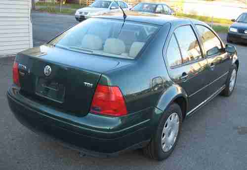 You are looking at 2001 Volkswagen Jetta TDI, turbo-diesel. Its single owner car with clean Massachusetts title and clean carfax report. Its 1.9 liter engine paired with 5 speed manual transmission. This is GL model so it is pretty much striped as far as options go. It does have power door locks and cd player. Crank windows, manual mirrors, no sunroof and no heated seats. Both, Ac and heat are in good working order. Engine starts and runs great. No leaks and no warning lights on the dashboard. According to carfax, timing belt was done @89k. It looks good on visual inspection, there are no cracks on the belt and no leaks in t-belt area. Intake manifold and egr were just cleaned. Transmission shifts fine in all gears, good clutch. Interior is tan cloth, with few small stains ( see pics) here and there but overall is clean. Exterior is not perfect. Looks good from distance because there are no dents but closer inspection shows lots of scratches and scuffs, small and big, especially on driver side of the vehicle. I've taken pics of critical areas, please check them out before bidding. There is tree sap on the hood. Scuffs and scratches on bumper covers. Scratches on drivers side rear door and quarter. Passenger side is clean. Tires are Continental with approx 60% tread left (see pics). Chip in the windshield, size of a dime, on pass side. -Winning bidder must contact us within 24 hours after close of auction. A $500.00 deposit via paypal is due within 24 hours of auctions end and full and final payment must be received within 7 days of auctions end. If no contact is made you will forfeit the deposit. Deposit is non refundable. -We have great sources for shipping cars and pass the savings directly to the buyer.. Shipping to the seaports in New York and New Jersey is also very easy and reasonable. Shipping to and from Florida is simple and quick since it is such a busy route. -We are licensed Massachusetts used car dealer. We do our best to describe and photograph the vehicles as accurately as possible. If any question comes up, please pick up the telephone and call me at 617-417-2138 for the answer. Assume nothing. Just call and we will have the answer or be able to get the answer for you.