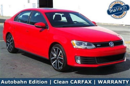 AUTOBAHN Edition Volkswagen GLI - look at the red stitching on the black leather! Clean CARFAX, 1-Owner, Regular oil changes Badge and Factory WARRANTY! The 2.0L TURBOCHARGED Engine, Shiftable automatic (with paddle Shifters on the wheel) and sport suspension mean you'll have a good time whenever you drive - even to the corner store! BUCKET Leather seats (heated for winter), DUAL Zone automatic climate control, iPod cable, FENDER Speakers (sound amazing), All-Weather floor mats and TWO Keys! It's in our SHOWROOM for a reason - Eye Candy! We'll take it out for you to test drive any time!