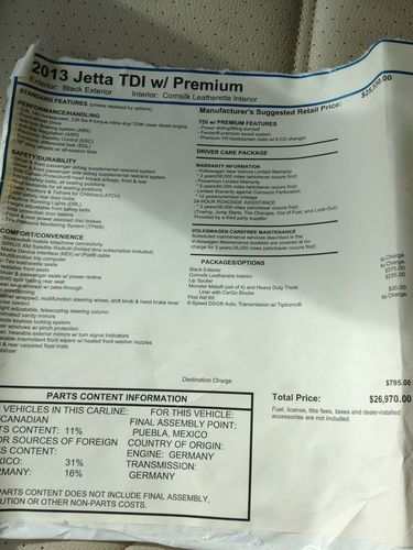 2013 Vw Jetta Tdi W/ Premium Pkg + Extras: Paint Protectant & Undercoating on 2040-cars