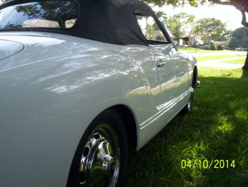 mile as it gets pumped back up with oil. It has been that way since we installed the engine and started driving the car again in 2011. Whatever you decide to do about the engine, you will be getting a terrific, very solid 1974 Karmann Ghia convertable with basically a new transmission, brakes, etc. The odometer currently shows about 31,800 miles. While I believe this to be original, I have no way to know what the actual mileage is. I invite you to contact me with any questions you may have about this vehicle. I prefer email. Please contact Bill – wrobeson at bellsouth.net or call 561.five.zero.six.4948. If I missed any angle, please let me know and I will take additional photos. Terms: Please remember, this is a 40 year old VW. It is not a new car. My interpretation of the car will vary from yours. The car shows signs of wear and tear and there will be imperfections and blemishes. It will need to be properly maintained. You are encouraged to come and inspect the car before making an offer or placing a bid. If you are unable to come and see it, you can hire an independent inspection service to check it out. Otherwise, the car will be deemed to be sold without inspection. The car is listed locally and will be listed For Sale at the Show N’ Shine VW show in Ft. Lauderdale this weekend. So I reserve the right to end the auction at any time. The car comes with a clear Florida Certificate of Title. The car is sold “As Is”. There are no warranties. Any descriptions or representations are for identification purposes only and are not to be construed as a warranty of any type. The buyer is responsible for all taxes and fees as well as the title and registration fees in the state and country where the car will be registered. Buyer is responsible for picking up or shipping the car. I will assist in any way that I can. I can store the car in the garage – as usual – for a short period of time after the end of the auction. But if you want me to store it, please make arrangements with me during the auction. If the winning bidder is International, I will help deliver the car to the Port of Miami. Please know, if the car is being shipped internationally, there is a slight chance it will be chosen by US Customs for inspection. If this occurs, the buyer is responsible for any fees due to Customs. I require a $1,000.00 non-refundable deposit to be paid via PayPal within 48 hours of the close of the auction and the balance to be paid via bank wire transfer or in cash within 7 days, unless other arrangements have been agreed upon during the auction. If the balance is not paid within 7 days, I reserve the right to relist the car or send a second chance off to the next highest bidder.