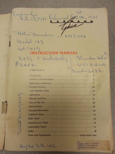 THIS 1962 KARMANN GHIA IS AN EXCELLENT RUNNING CAR IN VERY GOOD CONDITION.. THE CAR IS VERY SOLID HAVING BEEN GARAGE KEPT IT'S WHOLE LIFE. THE CAR SHIFTS, DRIVES AND BRAKES VERY WELL AND TOPS OUT AT 80 MPH. IT IS ALL ORIGINAL EXCEPT FOR SEAT UPHOLSTERY AND PAINT. BOUGHT AT SHANKS MOTOR CO. IN TERRE HAUTE, IN ON OCT. 13, 1961, THIS CAR'S MOTOR IS EXACTLY AS IT WAS AS NEW. THIS CAR HAS LESS THAN 72,000 MILES AND GETS AN UNBELIEVABLE AMOUNT OF ATTENTION.. THE CAR HAS NEW TIRES AND NO LONGER HAS THE WHITEWALLS.. ALSO, IT WILL BE SOLD WITHOUT THE RACK AND LICENSE PLATE FRAMES. THIS IS LISTED LOCALLY AND I RESERVE THE RIGHT TO END AUCTION EARLY.. THANKS FOR LOOKING AND GOOD LUCK, THIS IS ONE SWEET GHIA- ~HERE ARE A COUPLE OF VIDEOS: |