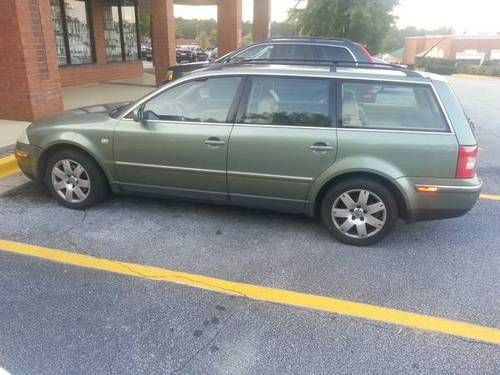 2002 Volkswagen Passat GLX Wagon. Tan interior no cuts or rips. Power locks and windows. Great on gas I put in 20 bucks and it usually lasts me monday thru friday. Runs great and has current emissions. Minor scrapes on the bumper but nothing major. Non smoker, everything works on the car. Paypal or certified check please and purchaser must pay the shipping fees if not in Georgia.