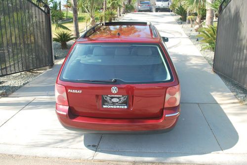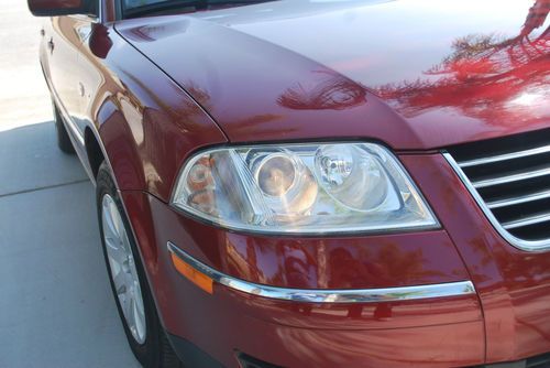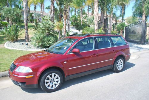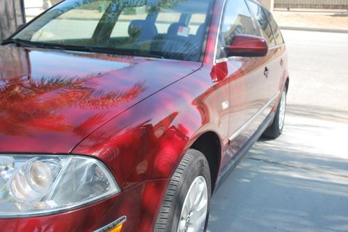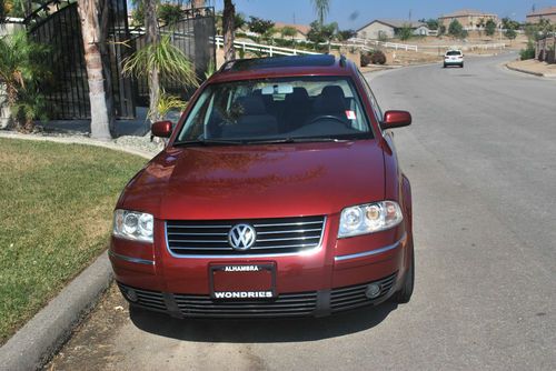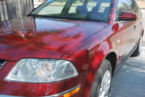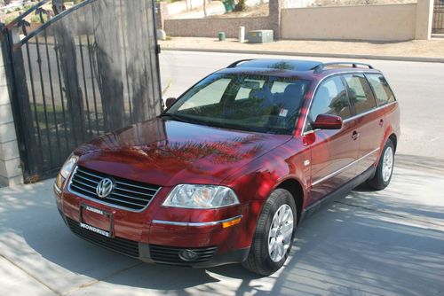 - Are you interested in a simply great car? Then take a look at this outstanding-looking 2003 Volkswagen Passat Vagon. Life is full of disappointments, but at least this terrific Passat will always be there for you and never let you down. This Passat is nicely equipped with features such as Cold Weather Package (Heatable Front Seats and Heated Washer Nozzles), Leather Package (Leather Multi-Function Steering Wheel, Leather Shift Knob/Hand Brake, and Manually Operated Rear Sunshade), Red w/Leather Seat Trim, CD player, Leather Seat Trim, Power moonroof, and Remote keyless entry. It scored the top rating in the IIHS frontal offset test. ...this nice passat doesn' have mechanical problem at all...you can come for test drive any time... this is my contact number ...714-926-8794......................... FOR A SHIPPING ESTIMATE CHECK WITH DEPENDABLE AUTO SHIPPERS, OUR ZIP CODE IS 92570 BUYER PAYS FOR SHIPPING.