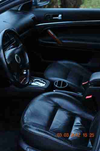 160,000 miles. Loaded with every available option. Looks, great. With an MSRP around $38K, Luxury W8 where else can you find a German car with eight cylinders for this price? Exterior:Tires and Wheels Alloy wheels 16 x 7 in. wheels Steel spare wheel 215/55R H tires All season tires Inside mounted spare tire Roof and Glass Variable intermittent rain sensing wipers Rear defogger Manual rear sunshade Power glass sunroof Towing and Hauling Cargo tie downs W8 8 cylinder Valves: 32 Valve timing: Variable Torque: 273 ft-lbs. @ 2750 rpm Horsepower: 285 hp @ 6000 rpm Base engine type: gas DriveTrain Drive type: all wheel drive Mechanical center differential Transmission: 5-speed shiftable automatic Center limited slip differential Suspension Multi-link front suspension Double wishbone rear suspension Four-wheel independent suspension Fuel type: gas Fuel type: premium unleaded (required) Fuel tank capacity: 21.1 gal. Safety & Security 4-wheel ABS Front and rear head airbags Dual front side-mounted airbags Remote anti-theft alarm system Emergency braking assist Front and rear ventilated disc brakes Rear door child safety locks Daytime running lights Engine immobilizer Front fog/driving lights High pressure washers headlamps Xenon high intensity discharge headlamp 2 front headrests 3 rear headrests Rear center 3-point belt Front and rear seatbelt pretensioners Stability control Traction control Electronic brakeforce distribution Emergency interior trunk release Front multi-adjustable headrests Rear height adjustable headrests Self-leveling headlightsFront Seats Multi-level heating passenger seat 8 -way power passenger seat 8 -way power driver seat Passenger seat with manual adjustable lumbar support Multi-level heating driver seat Driver seat with manual adjustable lumbar support Height adjustable driver seat Height adjustable passenger seat Leather Bucket front seats Rear Seats Folding with pass-thru center armrest Rear ventilation ducts Power Features Remote power door locks Reverse tilt passenger mirror provides curb view when vehicle in reverse Power mirrors Heated mirrors 2 one-touch power windows Remote window operation Convenience Cruise control Retained accessory power Power steering Universal remote transmitter (for garage door, security system, etc.) 12V front and 12V cargo area power outlet(s) Tilt and telescopic steering wheel Audio and cruise controls on steering wheel Comfort Interior air filtration Climate control Alloy and wood trim on center console Alloy and wood trim on dash Alloy and wood trim on doors Front and rear reading lights Wood trim on shift knob Leather steering wheel Electrochromatic inside rearview mirror Dual illuminating vanity mirrors Memorized settings Memorized settings for 3 drivers Instrumentation Clock Tachometer Trip computer External temperature display Low fuel level warning In Car Entertainment Mast antenna Monsoon premium brand speakers 8 total speakers 200 watts stereo output AM/FM in-dash single CD player,CD-controller stereo Speed sensitive volume control. I am also selling the vehicle locally and reserve the right to end auction at anytime.
