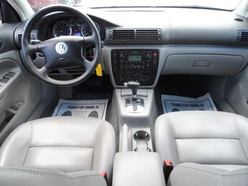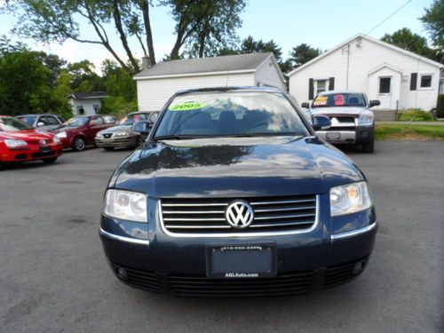 THIS IS A BEAUTIFUL PASSAT GARAGE KEPT HAS BEEN SERVICED AT VW THROUGHOUT ITS OWNERSHIP A 2 OWNER 30 SERVICE RECORDS ON CAR FAX HAS HAS OIL CHANGED EVERY 3K AND ALL MAJOR SERVICE DONE AT INTERVALS LEATHER HEATED SEATS , HEATED HEAD LAMPS , XENON HEAD LAMPS ,AUTO , FWD WITH TRACTION CONTROL , SUNROOF , 60 /40 SPLIT SEATS THIS CAR IS PRICED TO SELL HURRY DONT MISS OUT!!!!!!! 518.858.2298 A 1.8T 31 MPG NEW TIRES AND MORE MONSOON STEREO WITH 6 DISC CD HURRY 518.858.2298