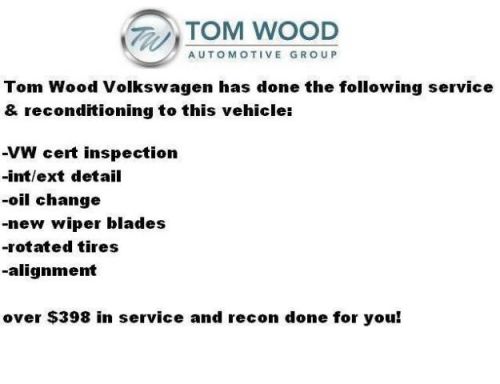 The Volkswagen World Auto CPO program has been selected by IntelliChoice for 5 years in a row as the most comprehensive certified program on the market. To meet WorldAuto standards, we set the bar a little higher. Every certified pre-owned Volkswagen is subject to a 112-point inspection. A Volkswagen technician goes through each car with a fine-tooth comb. And if they find anything wrong, theyll repair or replace it. And if anything does go wrong (because you know, sometimes things happen), youve also got the security of two years of 24-hour Roadside Assistance. Thatll cover towing to your nearest VW dealer, jump-starting or even refueling your gas tank.Youll also receive a CARFAX Vehicle History Report, so youll know your cars history inside and out. Well even throw in three months of complimentary SiriusXM satellite service. In short, At Tom Wood Volkswagen we will do everything we can to get you that new car smell, without that new car price. Tom Wood Volkswagen offers a huge selection of pre-owned vehicles from every make and model. Be sure to ask about our Tom Wood Certified pre-owned with a 12 month/12,000 mile warranty.