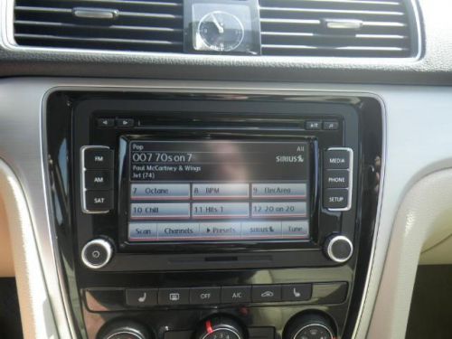 This 2013 Volkswagen Passat has features that include water & stain-resistant Leather Seats, Heated Seats to keep you cozy in the winter, and an Auxiliary Audio Input. As well as Side Airbags for extra safety, comedy, music, news & arts all at your fingertips with Satellite Radio, and an Anti-Theft System. As well as an Auxiliary Power Outlet, an MP3 Player / Dock, and a CD Changer. As well as Keyless Entry, Steering Wheel Audio Controls, and Child Locks. This vehicle also includes: Steering Wheel Cruise Control - Traction Control - Heated Mirror(s) - Tire Pressure Monitoring System - Bucket Seats - Cruise Control - Front Wheel Drive - Power Seat - Power Windows - Rear Head Air Bag - Disc Brakes - Air Conditioning - Power Locks - Power Mirrors - Auto Dimming R/V Mirror - Auto Headlamp - Compass - Leather Wrapped Steering Wheel - Center Console - Daytime Running Lights - Rear Window Defrost - Remote Trunk Release - Tilt Wheel - Vanity Mirrors - Bench Seat - Trip Computer - Center Arm Rest