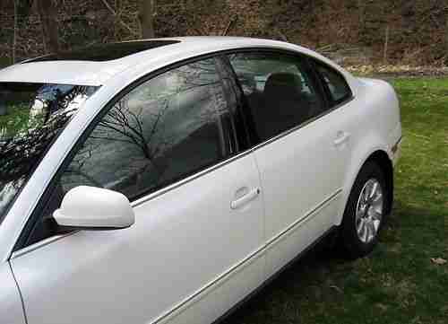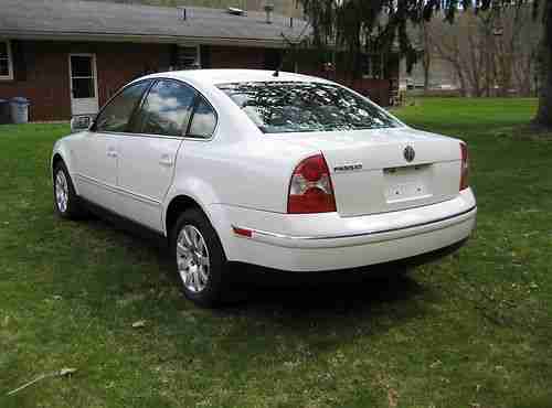 This is a recently traded 2002 VW Passat in far above average condition. Don't be fooled by the mileage. As, the original owner a lady had it miticulously maintained ,and always garaged. The original white paint is just about perfect. No chips, or car dings. And zero rust. Interior is in same condition, and a non-smoker car. Underside and under hood is clean as a pin. Tires are a matched set and still look new. Motor is smooth and quiet. With no leaks and had recent timing belt service performed. It runs and drives like a new one! All options work perfectly. If you buy this car for $3850 you will want to give me a tip! Additional information call KEN @ KEN'S AUTO 304-547-1188. Located 1-mile off I-70 near Wheeling, WV.