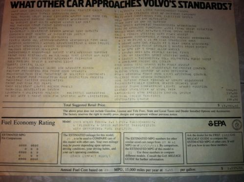 Rescued from a Texas used car dealership and carefully restored here in Jersey. Here's the real story of Grandma Boone as told to me by her husband and grandson: Carol Boone loved her Turbo and she was very particular about it. Sending it back for local repairs frequently with many minor complaints. I have pages of paperwork with complaints like "whistling noises", "groaning brakes", "uncomfortable seats", "improperly adjusted a/c vents" etc. It's actually pretty funny but Mrs Boone was not shy about spending money on her Volvo. I hold most, if not every, major repair receipt. She rarely drove the car and always kept it in the garage. As she grew older in the 1990's she drove the car less and less frequently. By the end of the 90's, it just sat in the garage. In 2002 it had 12k on the odometer when Mrs. Boone spent over $3500 to put it back on the road. She replaced the gas tank, fuel pumps, lines, distributor, new belts (including timing), trans & coolant flush, oil change, etc. In Summer of '03 she backed into a Texas roadside irrigation ditch and did $1624 of repair damage. Mostly the muffler and rear bumper. Carfax reflects this single minor accident and I have the auto body repair receipt. The accident ended Grandma Boone's driving days and unfortunately she passed away in 2005. Her husband and adult grandson drove the car around locally from 16-24k miles then traded the car into a Texas used car dealership this past summer for . . .... $1000. (They reportedly bought another Volvo if that makes you feel any better). I saw the car advertised on Craigslist and bought it sight unseen then shipped it to Jersey for restoration. So this actually is Grandma's original Turbobrick stored in a Texas time capsule for 3 decades. Interior- The leather seats are soft. Yes, soft tan leather seats. No rips or cracking only minor wear. No dash cracks with only minor sun fading throughout. Sunroof operates perfectly as well as all gauges, switches, chimes and lights. The A/C blows cold as it should. Exterior- The paint is in fantastic shape. A minor blemish here and there but nothing close to clear coat breakdown. One very small ding on drivers front wheel well. Again, there is no rust anywhere on this car. I also have an undercoating receipt from summer of '83. The rims are in excellent shape. Best Virgo's I've ever seen. Only one or two spots of very light rash out of 4. The original optional red bumper stripe is still attached but parts of the stripe are peeling. Mechanics- The car runs and handles perfectly and it's a complete joy to drive. You really get an idea of how tight these cars felt right off of the showroom floor. No record of a wiring harness replacement but there is no need. The original looks nearly perfect. I don't think you could find a used Turbo harness in better shape. Staged 0'd. Bougicord plugs, wires, cap, rotor and oil filter. Bosch alternator Cleaned grounds, replaced fuses, new battery Minor issues- The fuel filter is not OEM Pictures show the Alpine head unit and old glove box lock but both have been properly replaced. Later style rear deck tabs in pictures have been replaced with correct ones. I have a spare tire cover on the way also. Proper plush tan floor mats included. I simply ran it through the car wash for pictures. It would look even better after a nice detailing. Swag around your local meet in style. This car could easily be concourse shown. Maybe drop in an M46? Or it could be stripped down for an epic rebuild around the flawless shell. Or maybe just store it away as a retirement investment (it will surely appreciate in value more than your IRA). Car is currently located in 08501 New Jersey and available for prompt inspection. I am just off Exit 7a of the NJ Turnpike (I-95). I am also very close to Route 1, Route 130, I-195, and trains. NJ Transit's Northeast Corridor line stops nearby in Hamilton and Amtrak stops in Trenton. I'm also 45 mins from Newark and Philly airports. I am also willing to ship this car at 100% your expense. I hold the clean title in hand and will not release it to you without full confirmed payment 12/6 Item relisted because original listing had an incorrect VIN #. (Vin's can't be edited, only relisted) |
