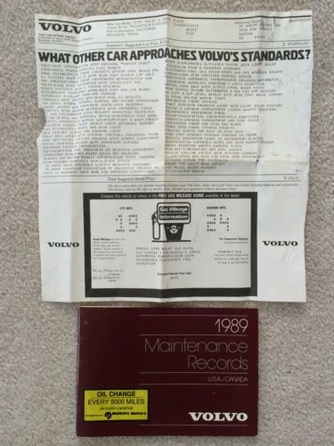 1989 Volvo – 160,000 actual miles! One Owner! Non Smoker. Rust free. Near mint condition and to the best of my knowledge, mechanically sound - inside and out.* It just breaks my heart to put it on the market. The miles are documented, the radio, cassette player and speakers work great. The Michelin rubber on all four wheels is in great shape. There is a small pin prick in the glass and a couple of very small interior surface cracks – which are barely noticeable. The heat blows hot and the AC works – but could use a charge. The seats and carpet look new – but are original. The engine compartment looks like its been detailed – but it hasnt – just immaculate and without any known leaks. The car runs smooth at 80mph without breaking a sweat and is a fantastic example of Volvo engineering! As you can see from the pictures, I have a treasure trove of Volvo memorabilia, literature and even have the original bill of sale and the original window sticker. To many new/replacement items to mention but has new belts, (including Timing), Tires, Radiator, Exhaust to name a few. Car is leak free. The detailed documentation – shows that the oil was changed every 5,000 miles and that all of the manufacturers’ recommended maintenance work was performed on schedule by the local Volvo dealer. The vehicle has always been garaged and literally driven about 4,000 miles a year. Records show that the dealer regularly washed and waxed the car– so the paint looks brand new! *Unfortunately, the car was recently side-swiped on the interstate. The title is clear (not salvage) but sadly, the left quarter panel was damaged and the bumper torn (and ultimately removed). Since the impact wasnt direct, the frame appears to be solid and true (see the attached pictures) and the car drives without any pull or sway – the same way it has for the last 25 years! Our pearl white 240 is being sold as is – but you are welcome to inspect it in advance of placing your bid – but if not, you will need to pay close attention to the photos. If you are the winning bidder - payment is due within 24 hours. Vehicle needs to be picked up within 7 days. Storage for up to 30 days is available at $15.00 per day – but arrangements will need to be made in advance. With such a low reserve, this is clearly one of the best dollar for dollar 240 values on Ebay. We live in Dublin, which is a suburb outside of Columbus, Ohio. After making a few calls, I can confirm that bumpers are available in the Midwest for between $100 and $150 with quarter panels also readily available. After this baby is put back together – it will once again be a spectacular show car and will hopefully provide its new owner with many happy miles of driving. Please feel free to contact me directly with any questions and happy bidding! |
