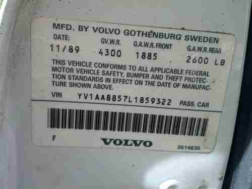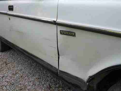 This is a white 1990 Volvo Wagon with undetermined mileage (the odometer didn't work when we purchased it). It is estimated to be 175,000-200,000. We purchased the car in Cottonwood, Arizona about two years ago from a private seller who informed us that he got it in Phoenix (having spent it's entire life there). There is a dent on the right passenger side from a minor accident. We had the car mechanically inspected before we bought it and was told it was all cosmetic. Before we left Arizona, we purchased a used, but straight passenger-side door and fender from a dealer in Tucson. These are included but will need to be painted to match. There is no rust except for a tiny spot on the hood which occurred due to tree sap.