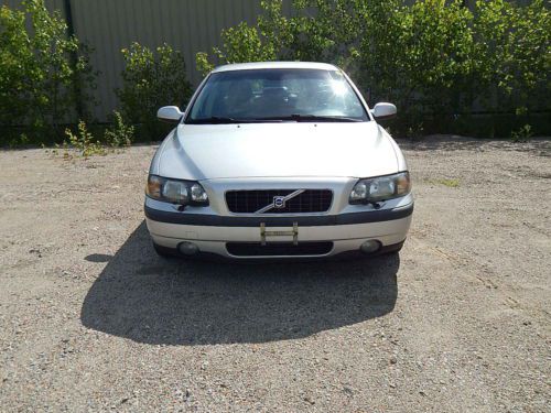 Up for auction is this 2003 Volvo S60 with a 2.5 liter I5 turbocharged engine, an automatic transmission, and all-wheel-drive. The car comes equipped with a silver exterior and a black leather interior which is very clean. This vehicle has minor wear and tear, like any used vehicle, such as small scratches and chips in the paint. Additionally, the airbag warning light is on - indicating a problem with the airbag safety system - and the car does have a tendency to steer slightly to the left in a straight line. This sedan runs and drives well, and the tires have good tread. This S60, with its powerful I5 motor, all-wheel-drive system, and spacious interior is well-equipped to be a great family car.