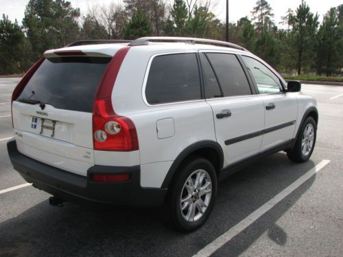 FOR SALE IS A 2005 ICE WHITE ON TAN VOLVO XC90 T6 ALL WHEEL DRIVE WITH ONLY 90K MILES. IT COMES EQUIPPED WITH THE 7 PASSENGER SEATING AND THE TWIN TURBO V6 ENGINE. IT IS IMMACULATE IN AND OUT AND DRIVES LIKE A NEW VEHICLE. THE REAR BUMPER WAS REPLACED AS THE VEHICLE WAS BUMPED IN A PARKING LOT 2 YEARS AGO. THE VEHICLE IS FULLY LOADED AND HAS BEEN WELL CARED FOR AS YOU CAN SEE FROM THE PICTURES. YOU WILL NOT FIND A NICER XC90 FOR THIS PRICE OUT THERE! PLEASE CALL 706-737-1148 WITH ANY QUESTIONS. WE OFFER NATIONWIDE SHIPPING AND OFFER GREAT EXTENDED WARRANTY PROGRAMS SPECIFICATIONS Exterior Measurements